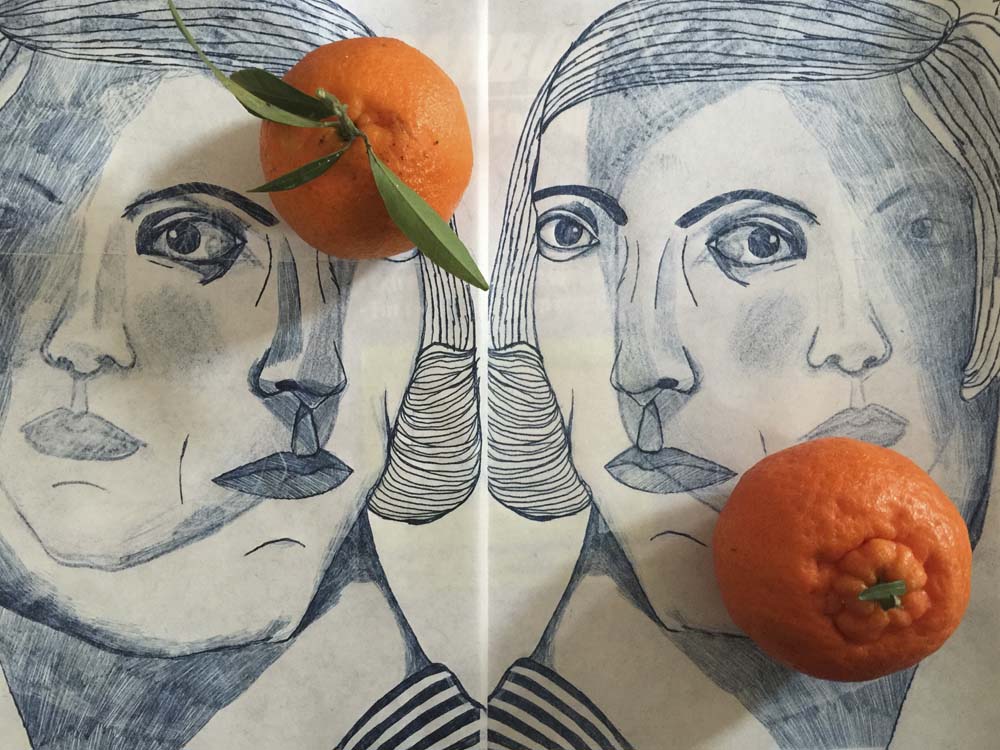 Category: Drawing, Watercolor Tags: art, color, drawing, fruit, Kuwait, painting, tangerine, watercolor, woman