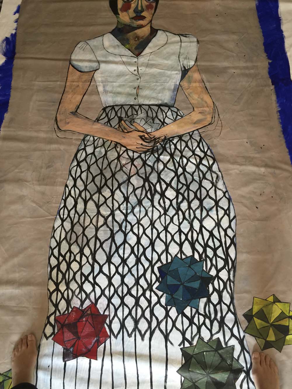 I’ve been wanting to paint a large scale piece for a while now. Around two weeks ago I finally started one. I didn’t get it stretched because a. I don’t have much space to work upright on anything of that scale and b. I honestly thought it wouldn’t be the great challenge it’s proven to be. But here it is so far.