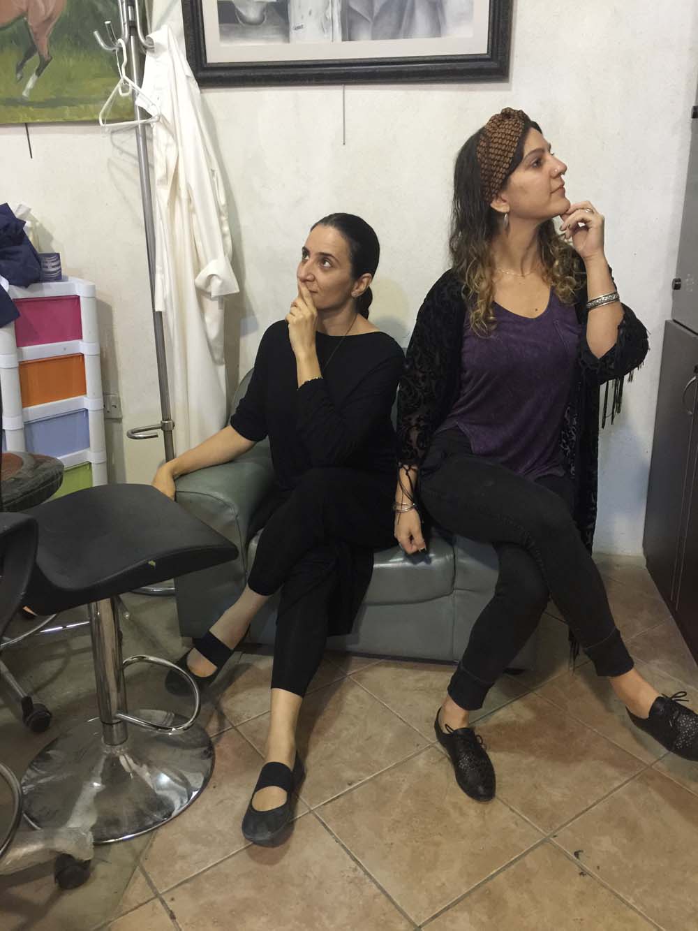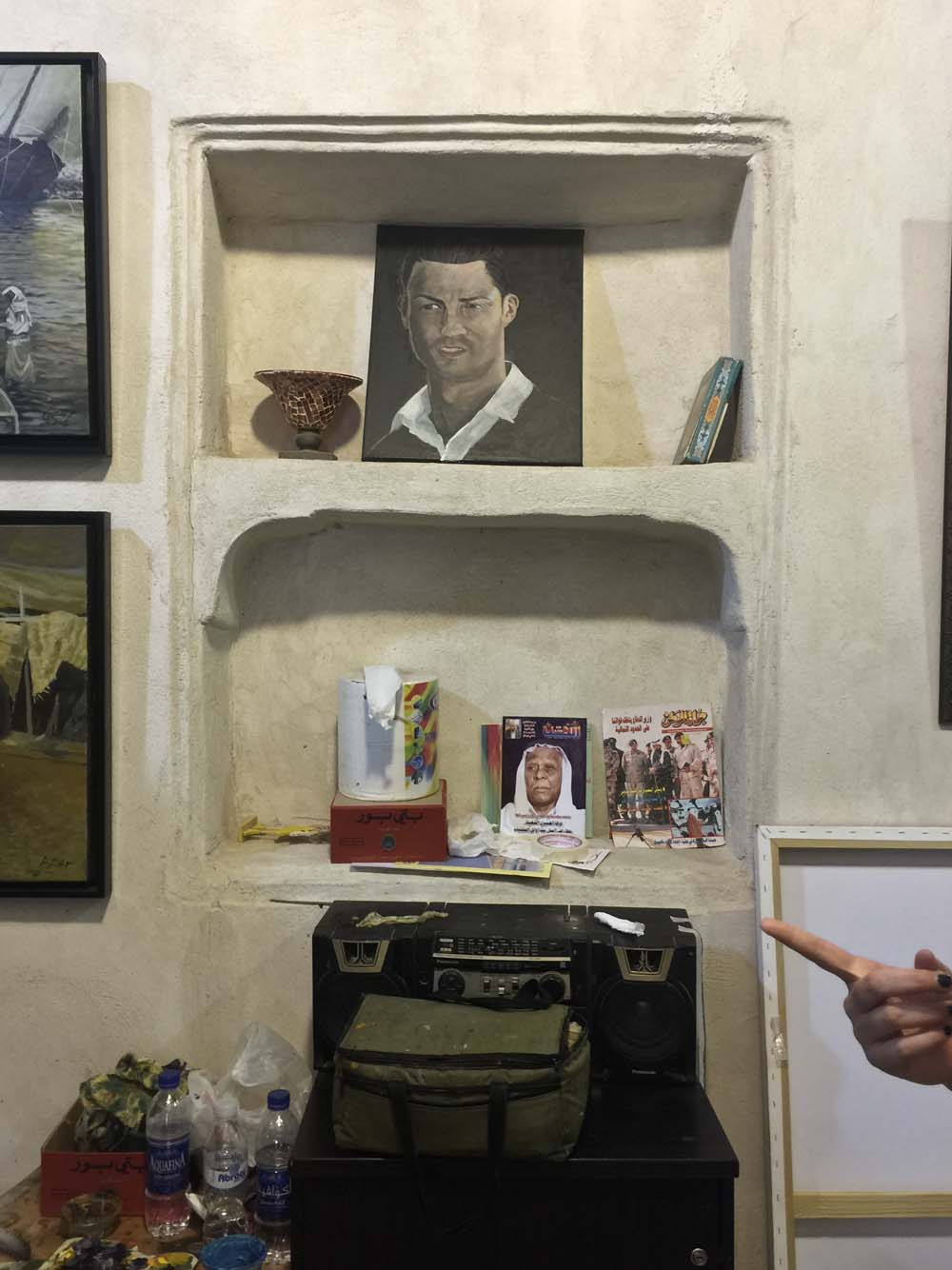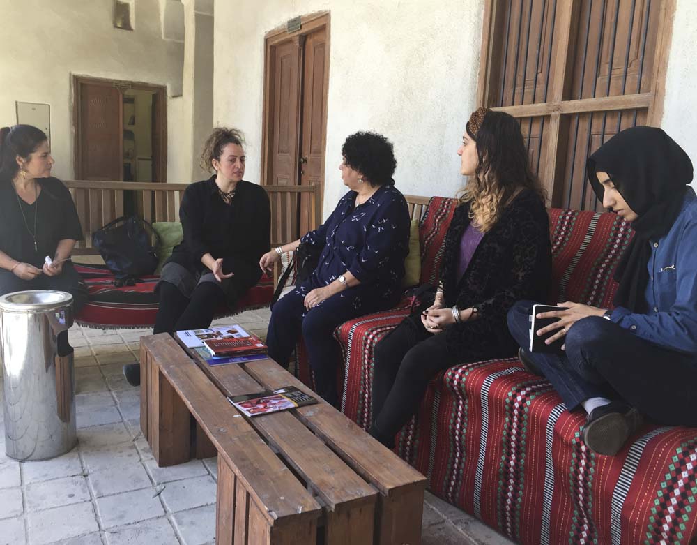 In Thuraya’s jointly-occupied studio (she really should have her own space), she and Reham discuss one of her paintings.