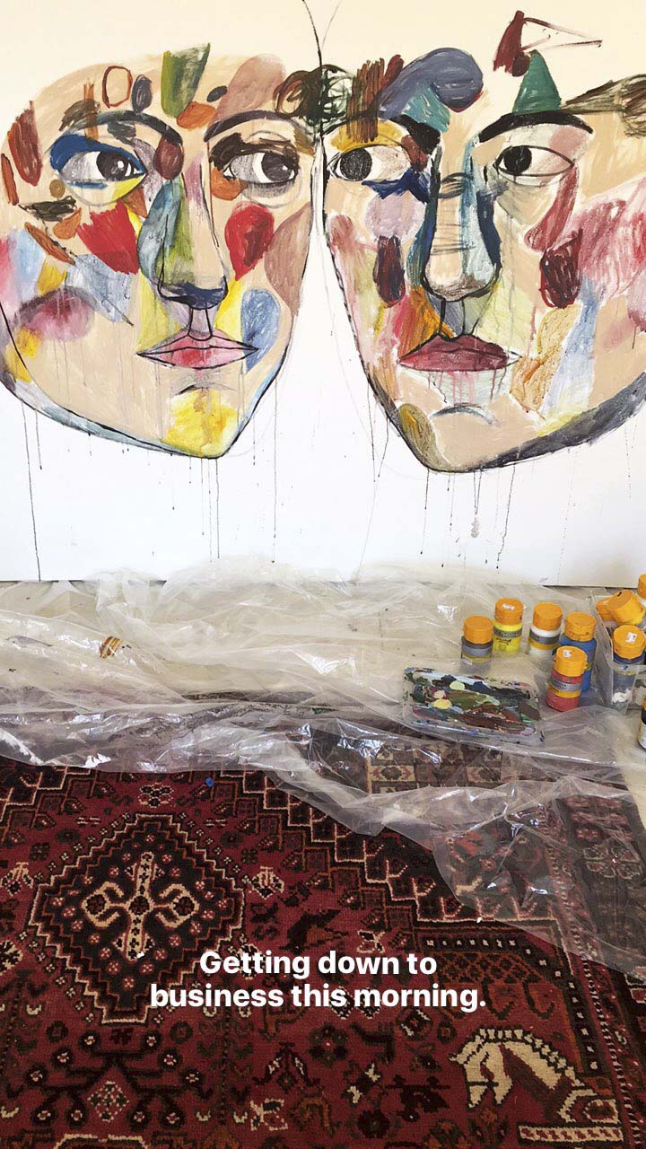 In this photo I’d been painting since 7 am, so I take a midday break. At this point I’m at a crossroads and can’t decide if I want to include necks and shoulders or not. My dear friend Laura thinks I shouldn’t because like this ‘their thoughts are connecting’. That makes sense to me.