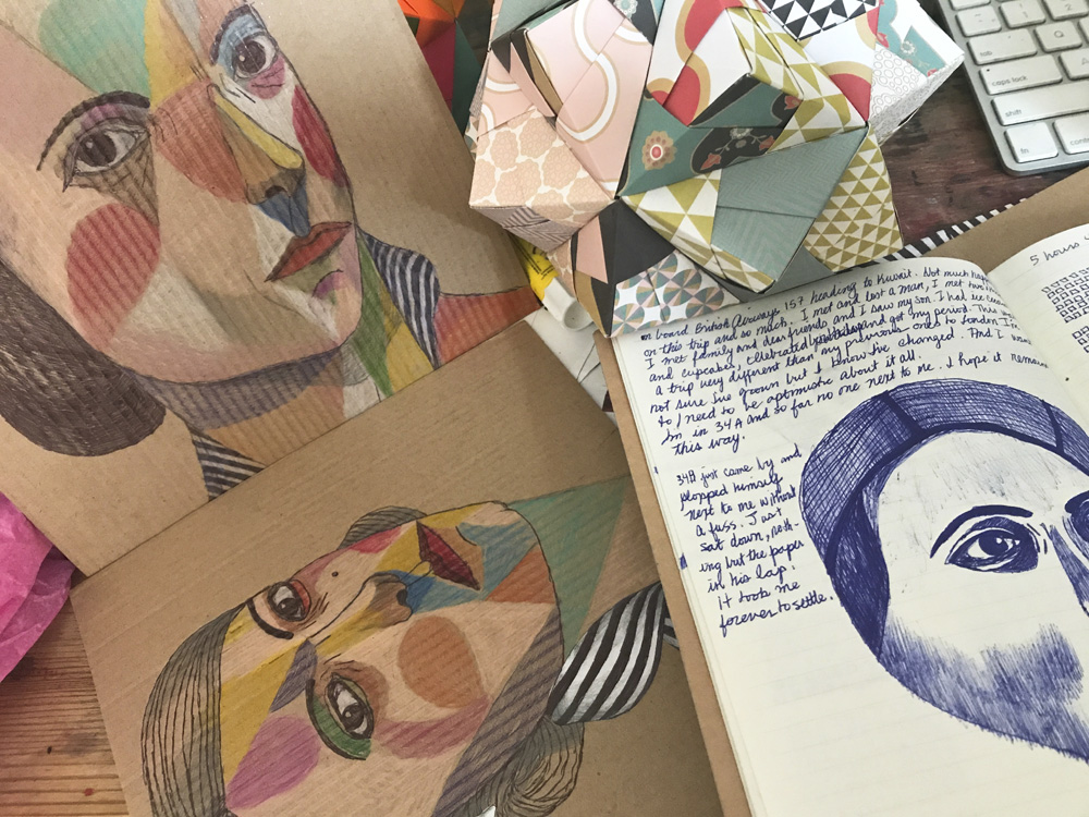 Category: Cardboard Pictures Tags: art, artist, cardboard, color, colored pencils, face, Kuwait, pen and ink, upscaling, video, woman