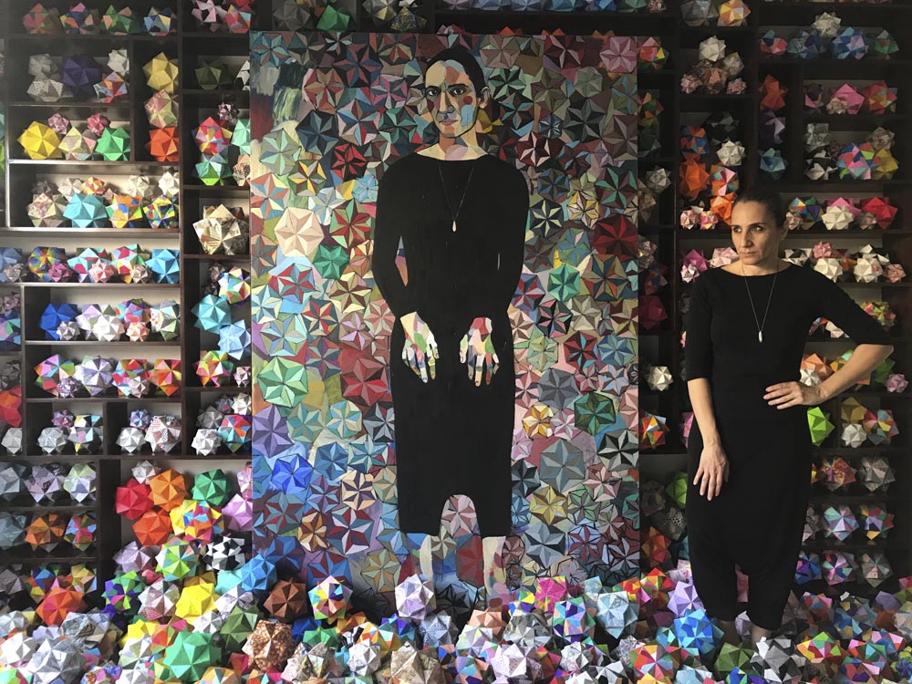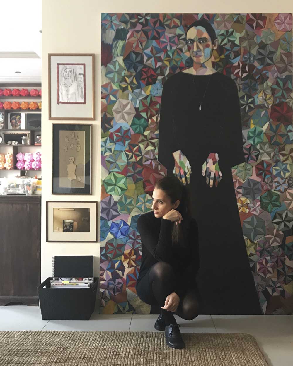 I think this is one of my most elaborate and time-consuming Instagram posts yet. For it, I needed to remove a huge three-seater couch and fill my shelves with my 500 polyhedra. Oh, and I needed a life-size self-portrait. No biggy.