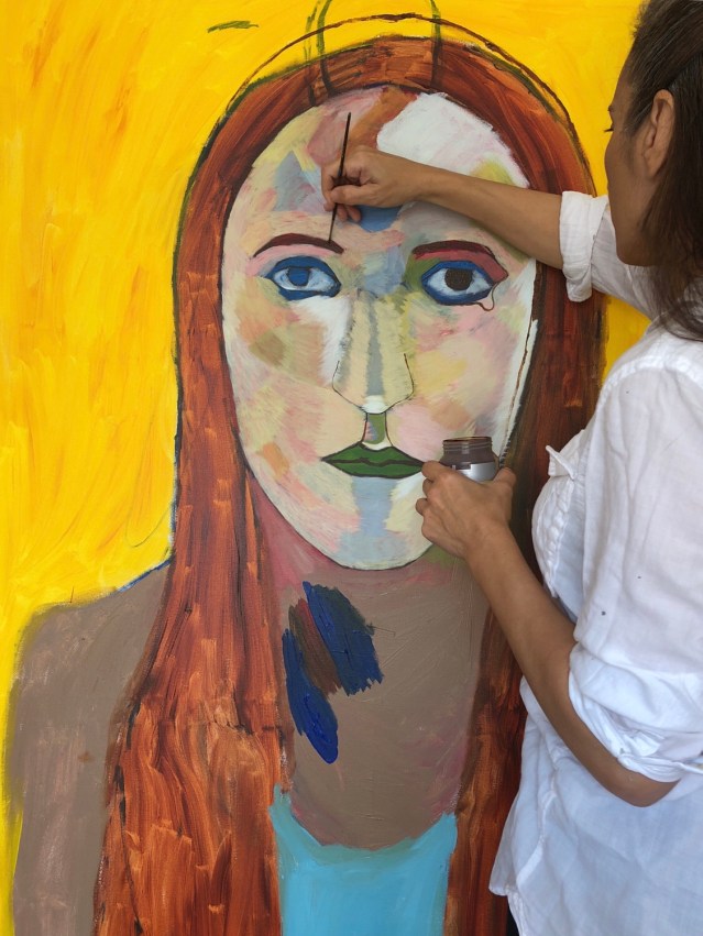 Last October my right ear just suddenly blocked up. It felt like I had a cotton ball in my ear, and it wasn’t subsiding with time. I finally went to a doctor (this was in London) who told me that my ears were fine and that, I will quote, ‘It’s all in your head’. Hearing this, while at the same time going through anxiety and depression, my heart sank. After exhausting myself googling ‘blocked ear’, ‘blocked ear from anxiety’, ‘blocked ear during peri-menopause’ I decided to see an acupuncturist. I booked with Fatima Juma at the FSRC and I think that was the smartest decision I’d made in that tumultuous period of my life. My ear isn’t completely unblocked but the way it is right now is something I can live with. This painting is the first of three dedicated to my wonderful once-upon-a-time acupuncturist. Here’s to Fatima and her needles!
