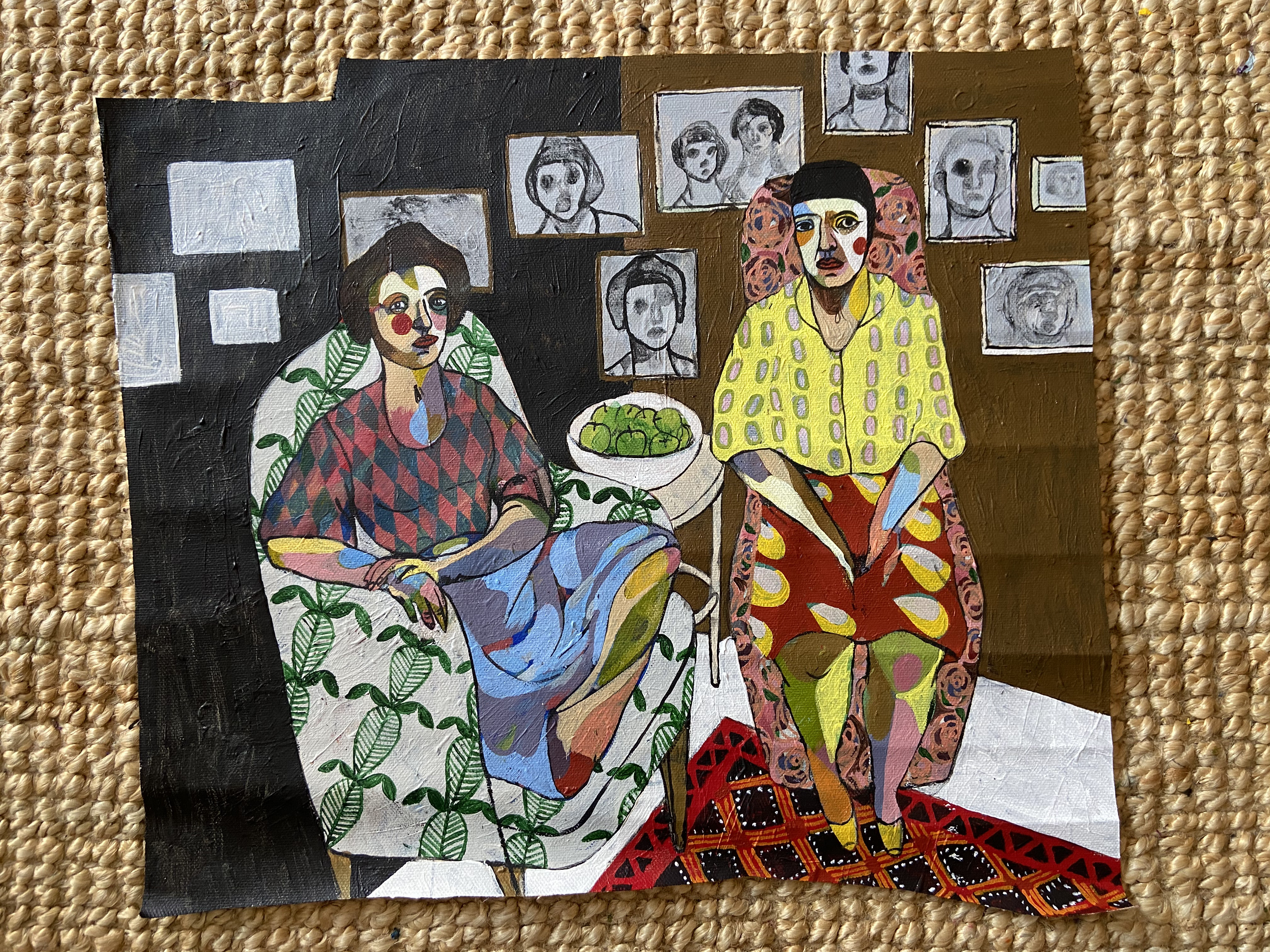 A Miserable Visit, 2021, acrylic on canvas. I painted this on a scrap piece of canvas so the size is varied.