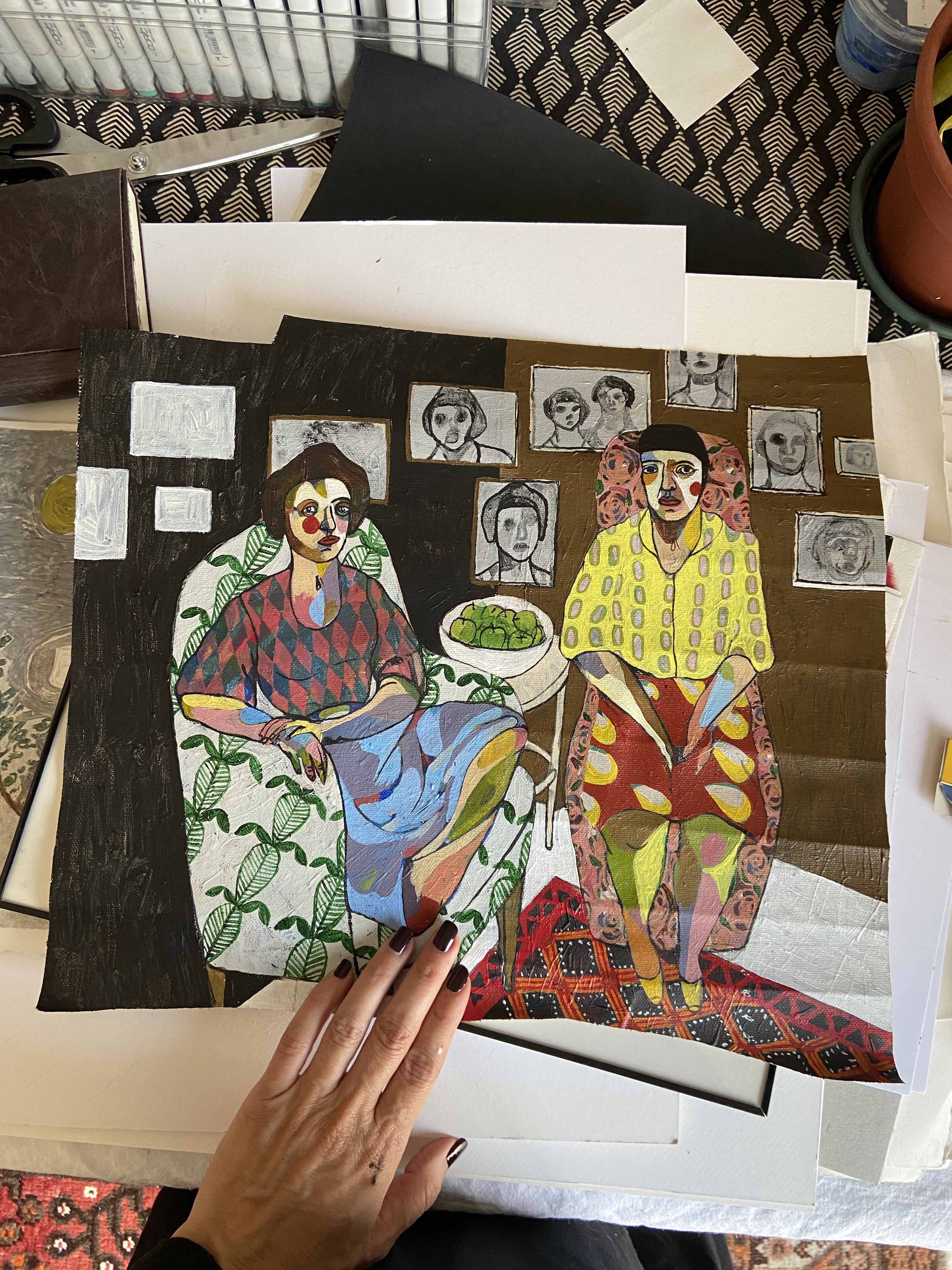 I don’t know how I’ll ‘package’ this painting. If I stretch it I’ll lose some precious details. I think I’ll just leave it as it is.