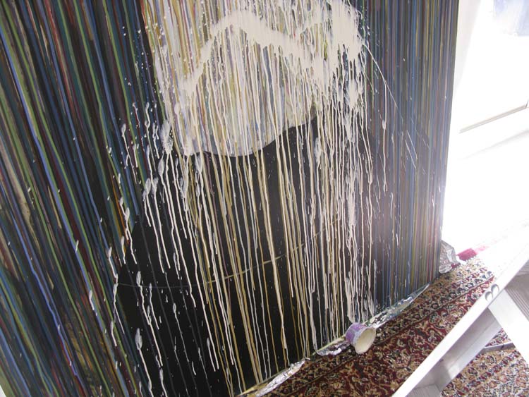 I’m approaching this painting from a totally different and new angle to how I normally work. There is absolutely no plan, I’m being extra spontaneous and I’m taking my sweet time. I have about another six months to finish it and that is a big part of how I plan to work on this canvas. I want it to keep changing over time until the big day comes when I must give it away. I just feel so free working on it.