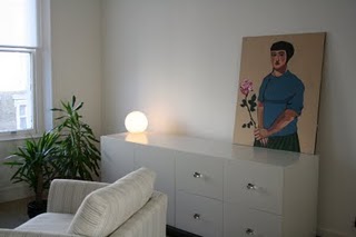 I think that where a person chooses to hang a painting says a lot about her relationship with it. It also serves as a continuation to the work itself. Sarah has placed her lady at one end of a cabinet, with a simple lamp at the other. Before I saw this, I never felt that my works would suit a minimalistic setting. But I really love this. It’s put the painting into a whole new context for me. I do hope to visit this particular one some day.