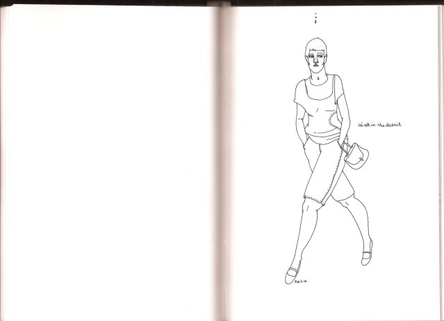These are three pages from my black sketchbook. I bought the sketchbook a few years ago because I liked the novelty of it, and I knew that I would have to somehow work around the problem of drawing on black pages. One of the ‘projects’ I gave myself was this one: I asked my friend SB to cut me some snippets from the paper he had just finished reading (which was The Guardian Weekly). Then I gave myself the challenge of ‘ad libbing’ some sketches while incorporating into them the scraps he gave me. I think I did a pretty good job. I was pretty happy with the results anyway. Read More