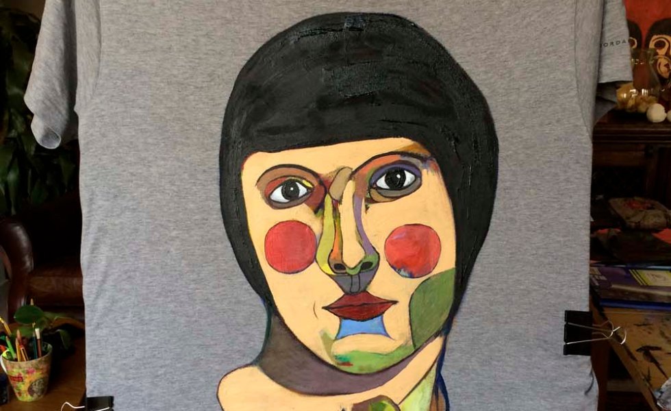 My nephew Mahmoud saw a shirt I had painted a while ago and said that he would like one. I was so flattered by his request that I couldn’t help but oblige him. Listen to Eez-eh by Kasabian