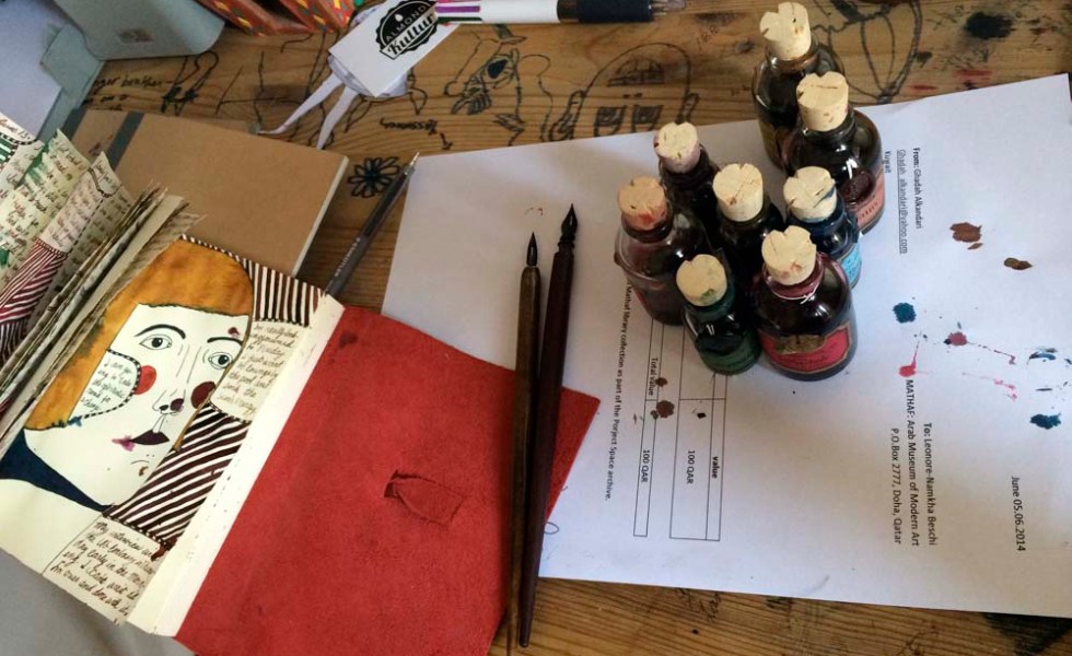 I just ordered two accordion notebooks and am so excited to create my storybook drawings in one of them. I was inspired to use this format after I visited the Etel Adnan exhibition at the Mathaf Museum in Doha last spring. And thanks to my own exhibition’s co-curator Namkha for teaching me the word ‘leporello’. I love it.
