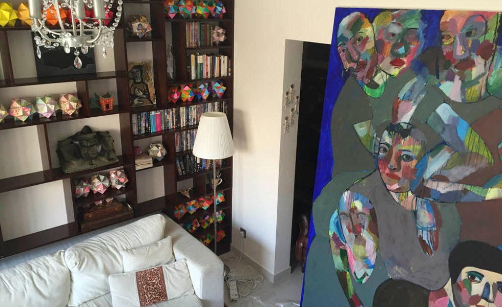 I think this is one of my most elaborate and time-consuming Instagram posts yet. For it, I needed to remove a huge three-seater couch and fill my shelves with my 500 polyhedra. Oh, and I needed a life-size self-portrait. No biggy.